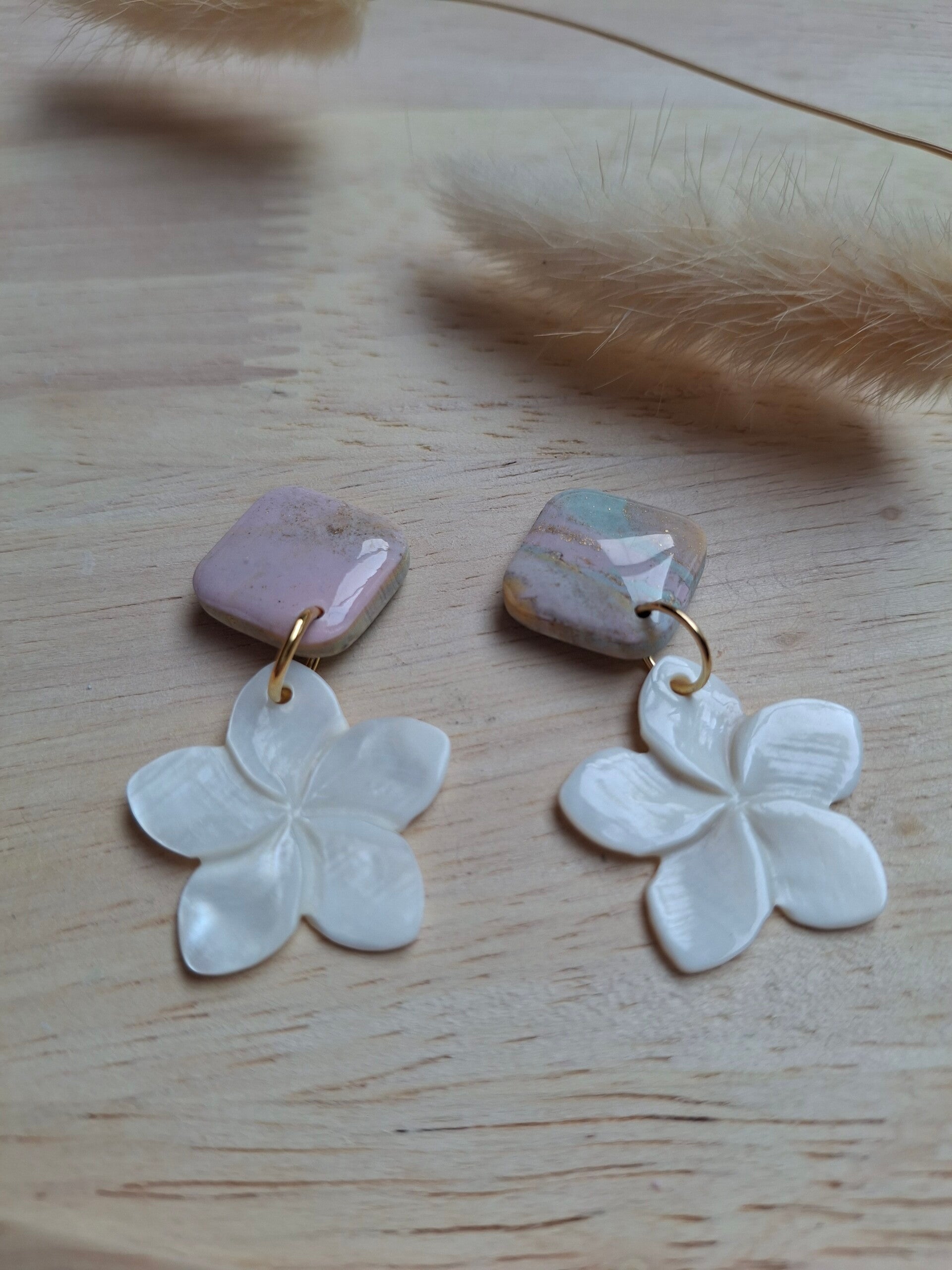 Unieke, lichtgewicht oorbellen van duurzame polymeer klei met hypoallergene stainless steel onderdelen. Comfortabel, nikkelvrij en perfect voor dagelijks gebruik.